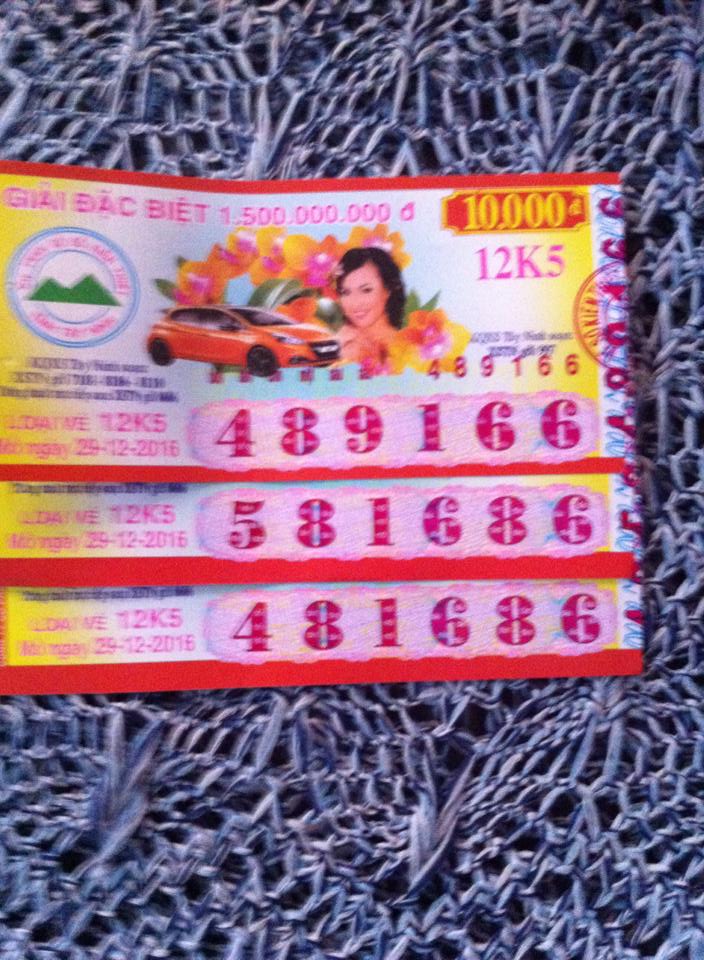 "Kết quả xổ số trên bàn , từng con số ghi rỏ ràng