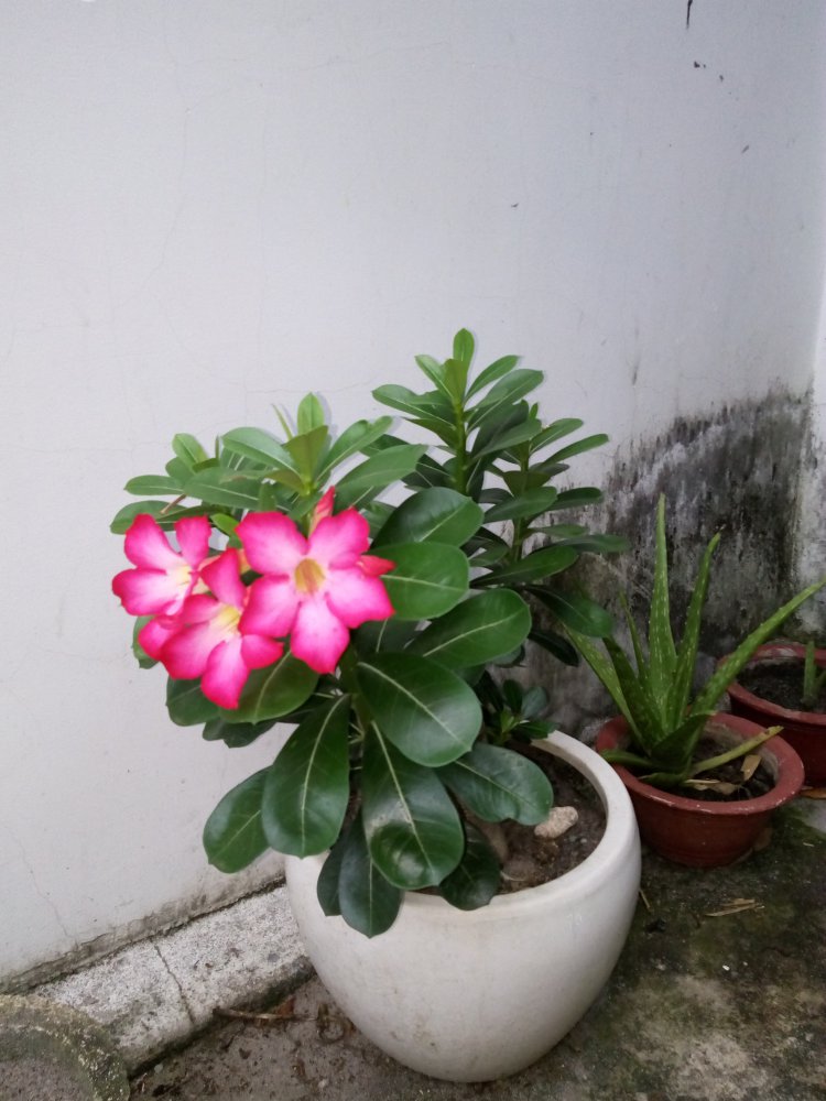 chậu Hoa sứ huynh trồng được 1 năm ra hoa , trồng từ lúc cây con nhỏ xíu