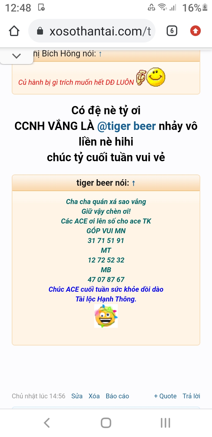 xổ 31 là ngon rồi. Đồng xổ 13 ác thiệt . Nhớ nha cu đồng cứ xổ 13 mổi tuần thứ 4 đi nha. (holidayspirit) . Nói chung là :wins: :140: :tea: :cheer2: :banana: